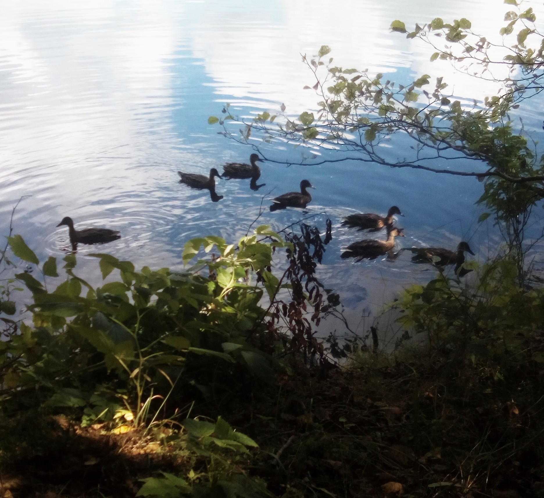 Ходил на остров. Взял пробник 7-летнего грузина, Оливье, французскую булочку. Утки, числом девять, на фото не все, выманили булку. Гады. Я их запомню! Всех!) Знакомая сказала, что у уток похоже существует память на лица. Эти были крайне доверчивы.