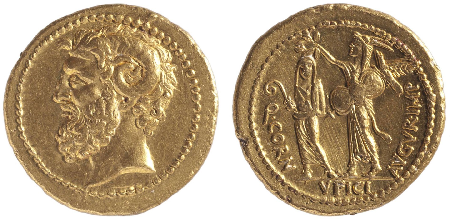Есть ещё вариант в золоте. Вот аурей из Парижского Кабинета медалей