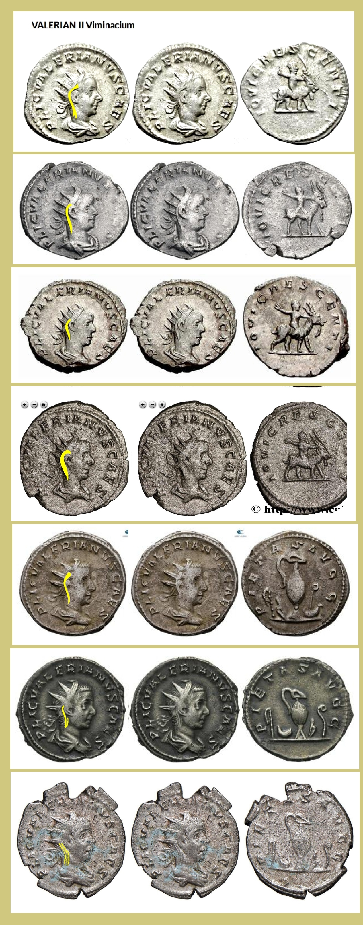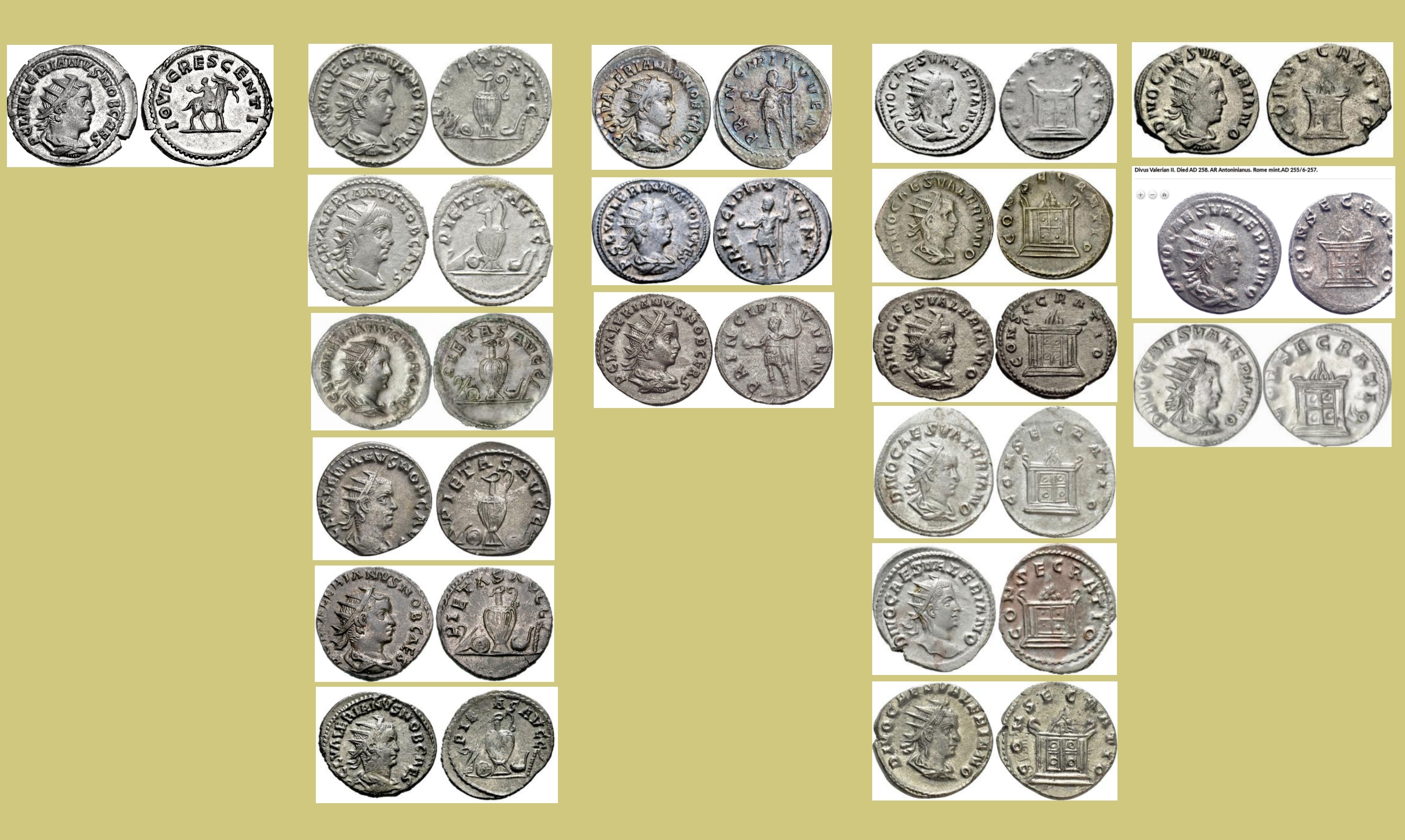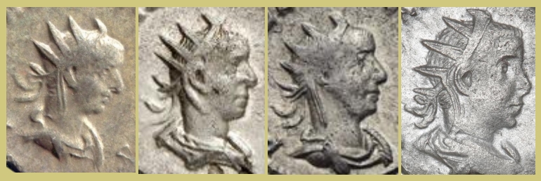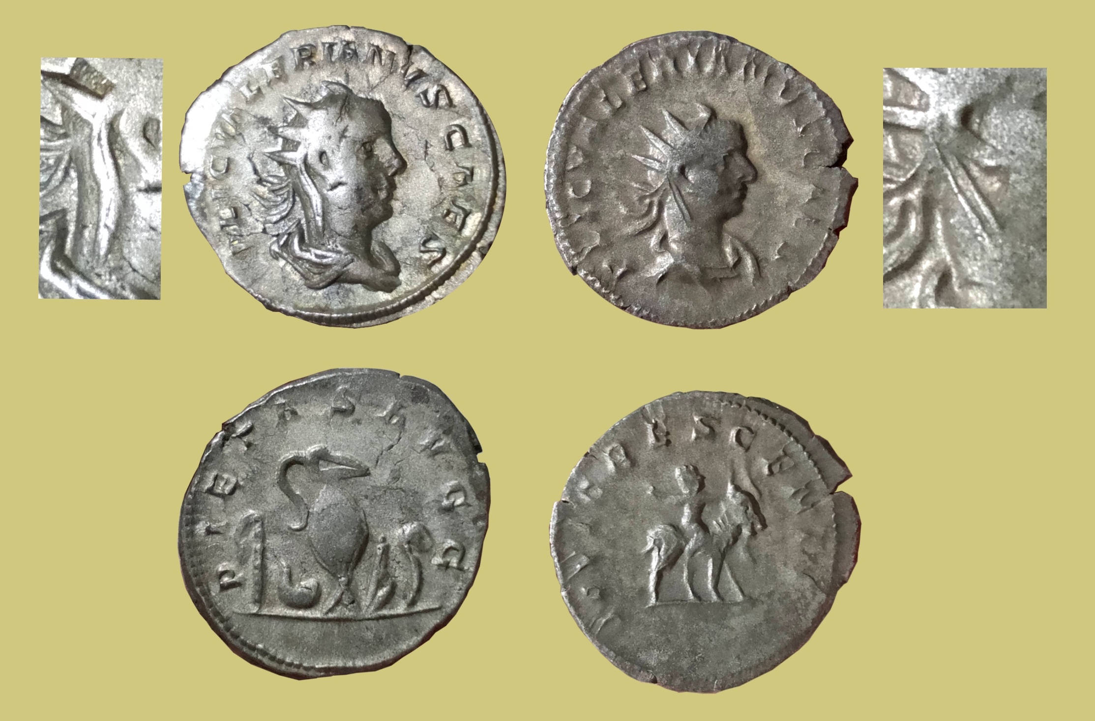Антонинианы Валериана I, Галлиена, Валериана II и Салонина чеканили в одно время.