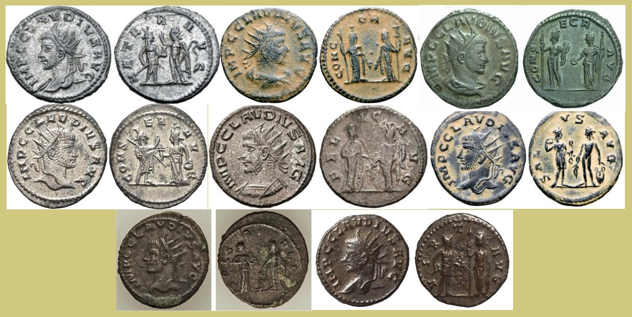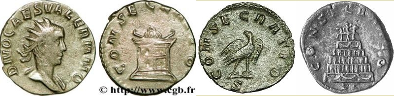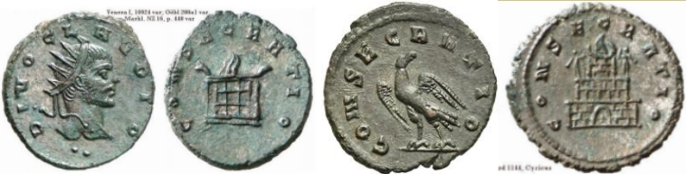 И вот подошла очередь Клавдия II Готского, его брат Квинтилл отчеканил серию консекрационных монет ,