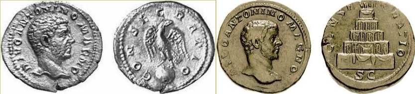 В III веке тип таких монет (для мужчин) был однообразным – алтарь, орел, погребальный костер