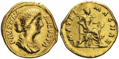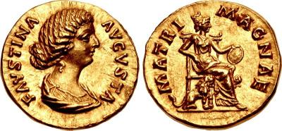Ясно, что аверс от денария а реверс от аурея , хотя как сказать... драпировки такой на портретах не нашел ни на денариях, ни на ауреях Фаустины
