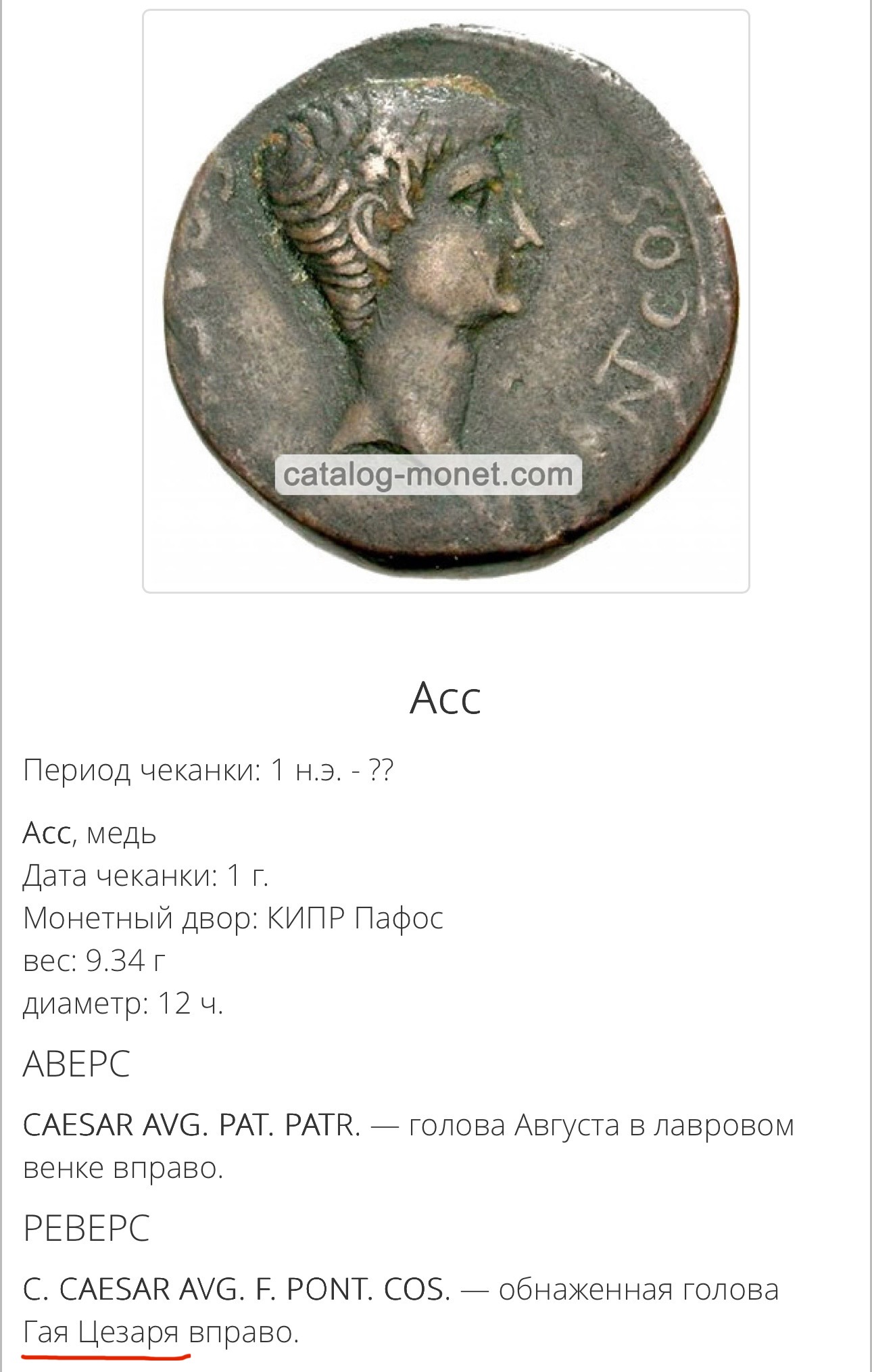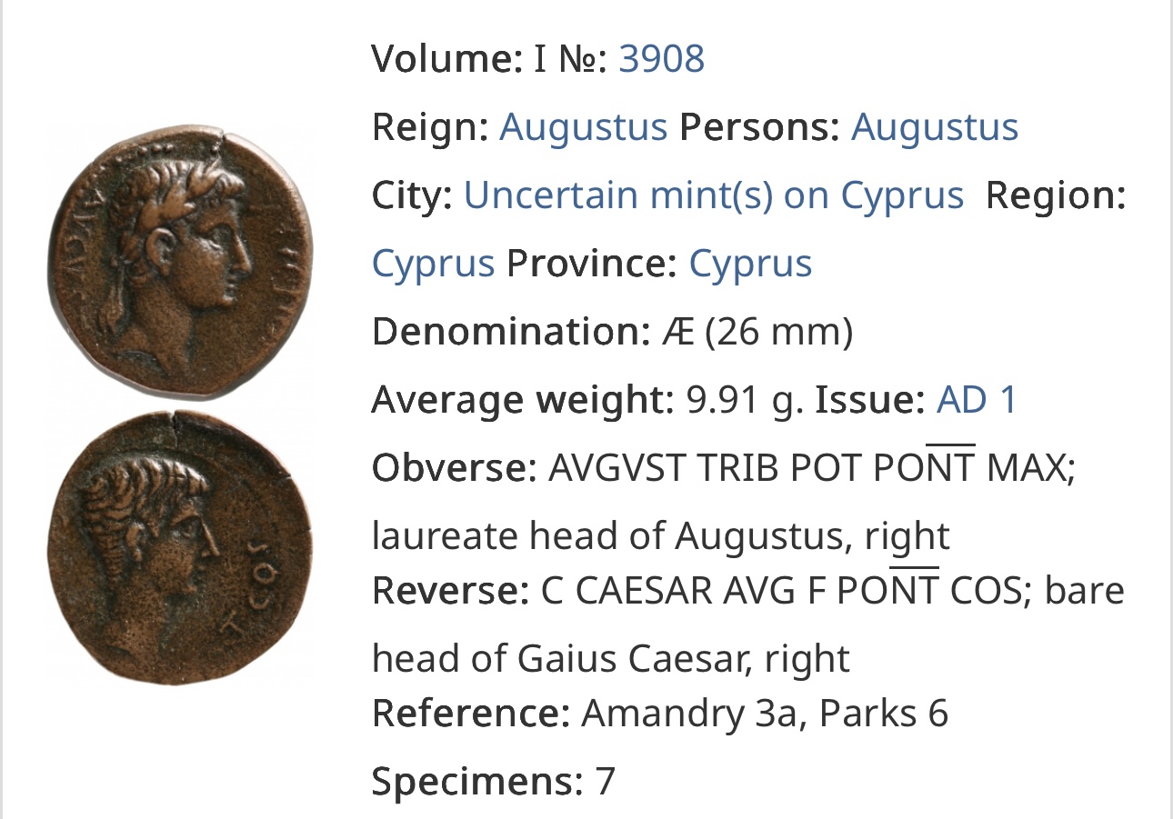 Наверно в честь его консульства в 1 году и была отчеканена эта монета, потому что в описании к ней дата чеканки 1 AD?