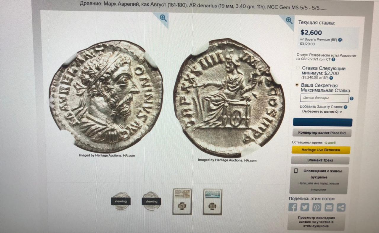За Домициана бьются из-за сохрана. Домициан в таком сохране исключительно редок. Что касается Марка нашего Аврелия, то думаю, там наблюдается лишний нолик. В отличие от Домициана Марк в сохране встречается довольно часто.