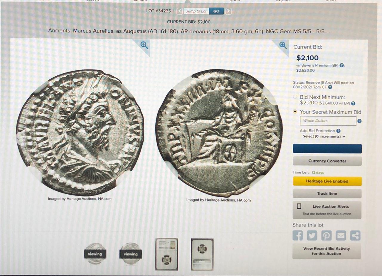 Денарии не моя тема , я свои уже все продал . Оставил только Адриана в UNC и то только потому что Тетру Адриана в unc , за вменяемые деньги не купить , лучше пусть денарий останется . Листал аукцион а тут Домициан за 2200 , а дальше Аврелий за 2100 , дальше еще лучше , Аврелий за 2600 и это за неделю до аукциона . Думаю может я чего то не знаю ....спрошу у знающих людей .