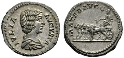 В случае с Кибелой (или Матерью богов - так вернее... Юлия Домна - как Мать богов - дала жизнь двум будущим императорам (почти богам)... Такие были надежды у Септимия Севера в начале третьего века... Не сбывшиеся, или сбывшиеся частично) - сложно рассчитывать, что я вот ее хочу, и я скоро ее куплю... Вот только ценник здесь, на Синем, уточню... Дай Бог, Вам повезет, и Вы ее действительно купите... Но денарий с такой вот обороткой - это не пакет молока в магазине... Так не получится - захотел молочка, зашел в ближайший супермаркет за углом, и взял... Неа... Не будет так!!!