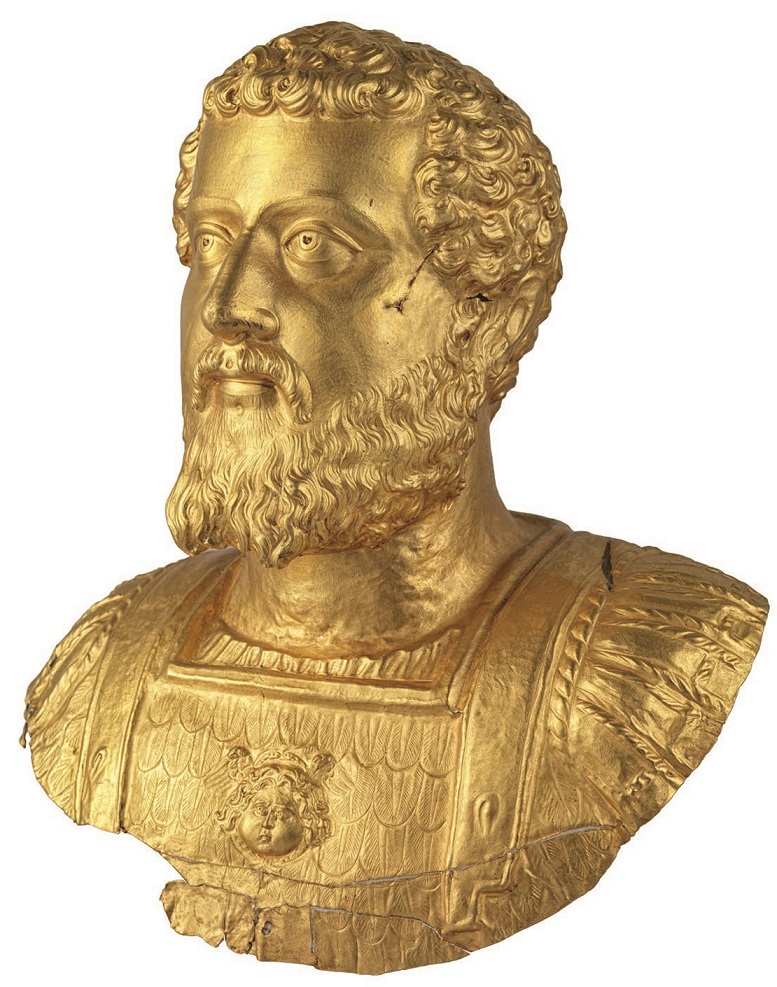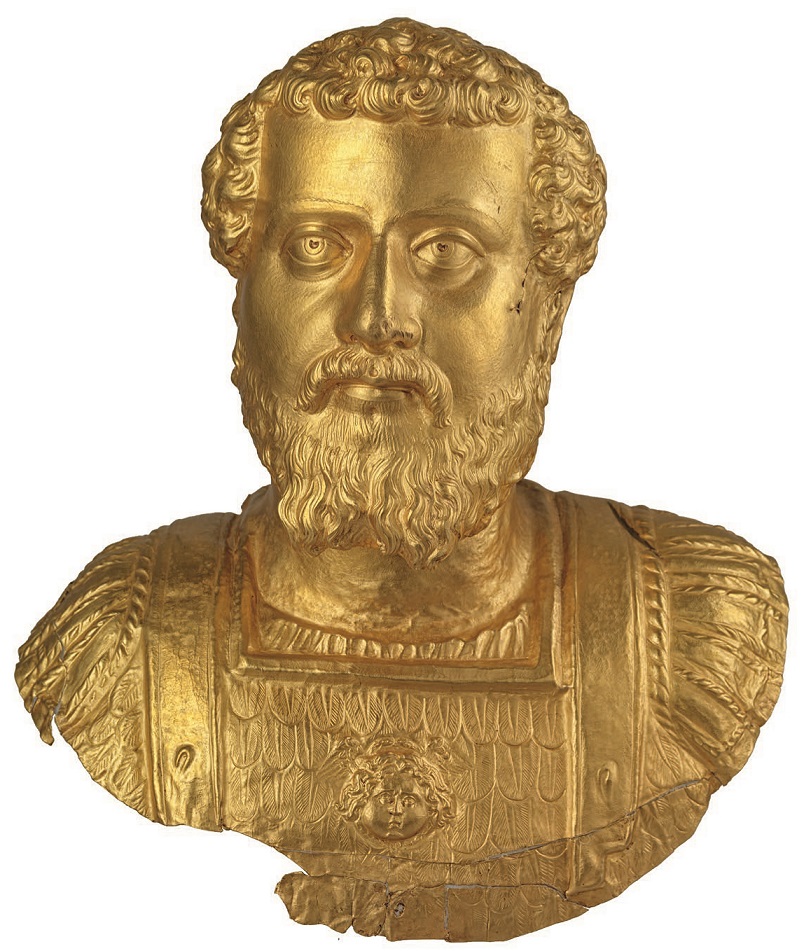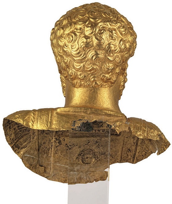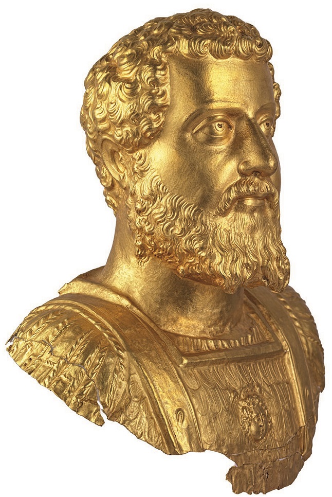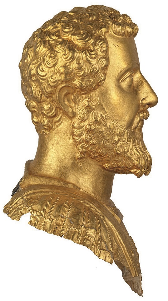 Речь идёт о бюсте Септимия нашего Севера, сделанного методом чеканки из тонкого листового золота.