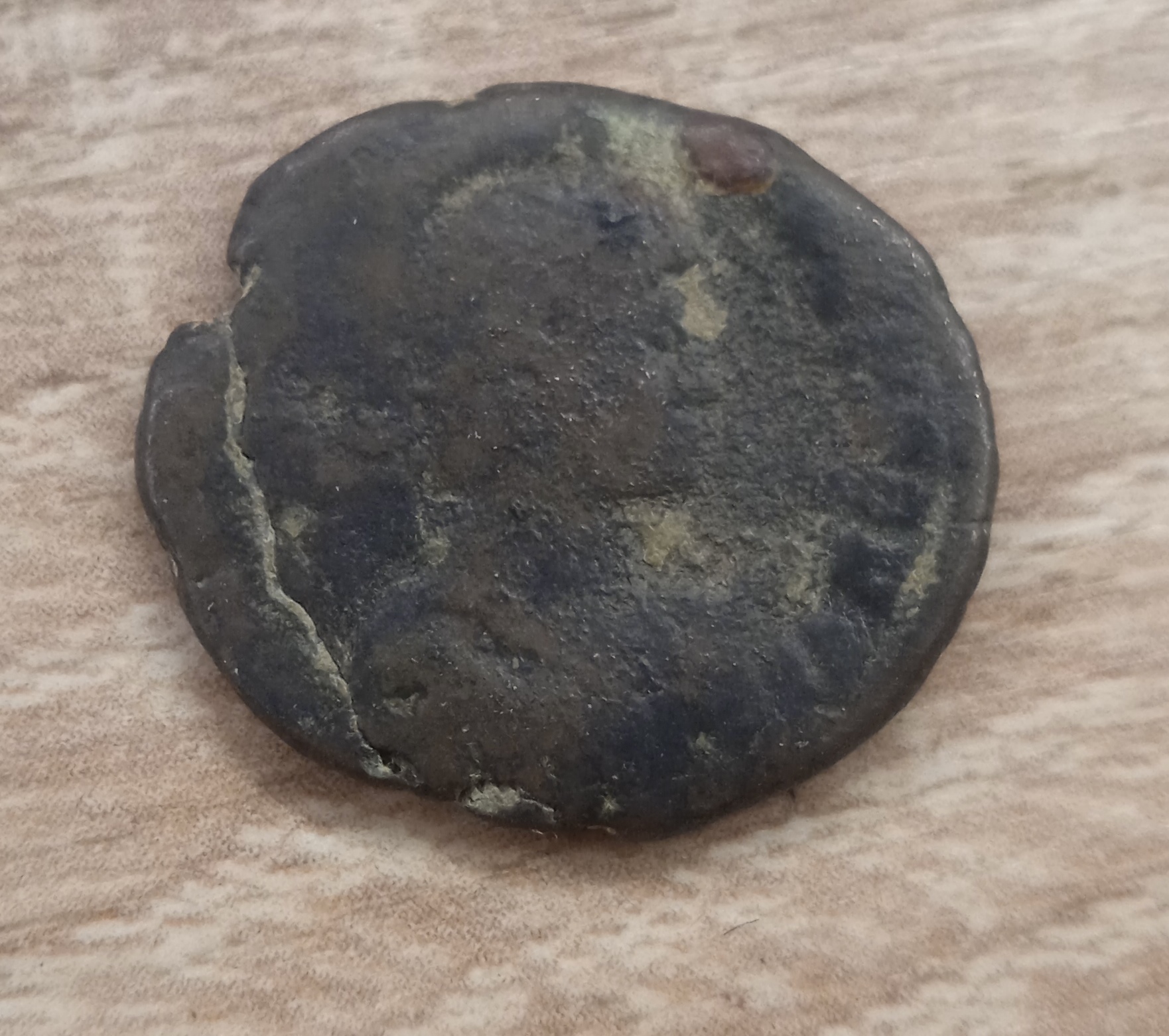 И  еще куча  всего,меди...Прицепом 2 югославских порножурнала,плеер "Unicef"и самое главное,к чему тема-античная монета...Из Херсонеса.😁На самом деле,только сейчас  увидел ее.Средневековье.С маленькой буквой "в"...Тогда и не впечатлило совсем...