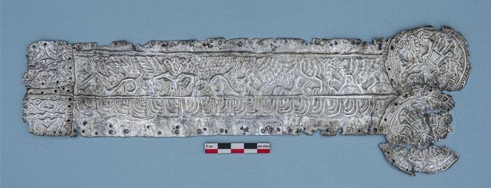 Специалисты Института археологии РАН обнаружили в курганном могильнике Девица V в Воронежской области уникальный для Среднего Дона артефакт — серебряную пластину с изображением нескольких божеств.