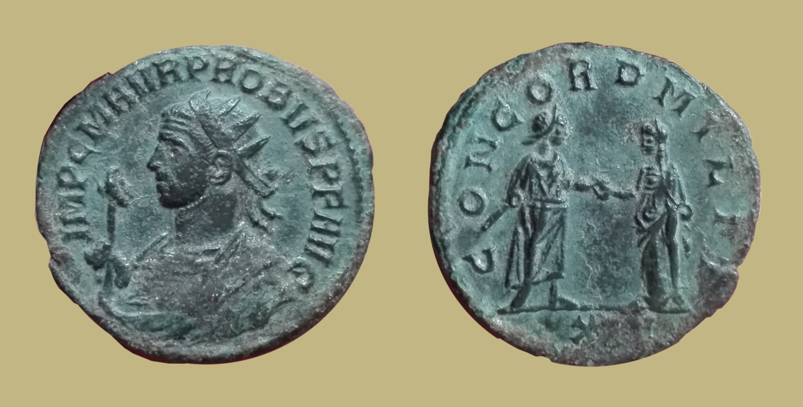 Неописанный в RIC антониниан Проба CONCORD MILIT с необычным изображением императора на реверсе
