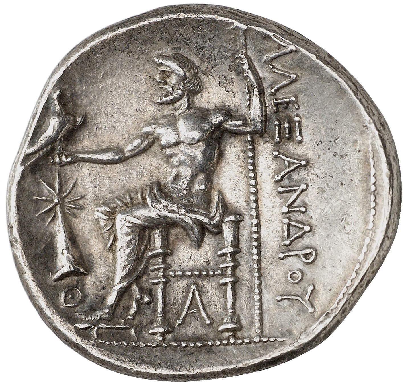 17,22 г, 25 мм . По Прайсу 113. Возле колена Македонский шлем . ( согласно описанию )