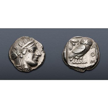 Монета, действительно, сильно напоминает более ранние выпуски. Это видно и по сове с головой меньшего размера, и по стилю изображения самой Афины. Только волосы на висках выглядят так как на более поздних выпусках (без дополнительной волны).