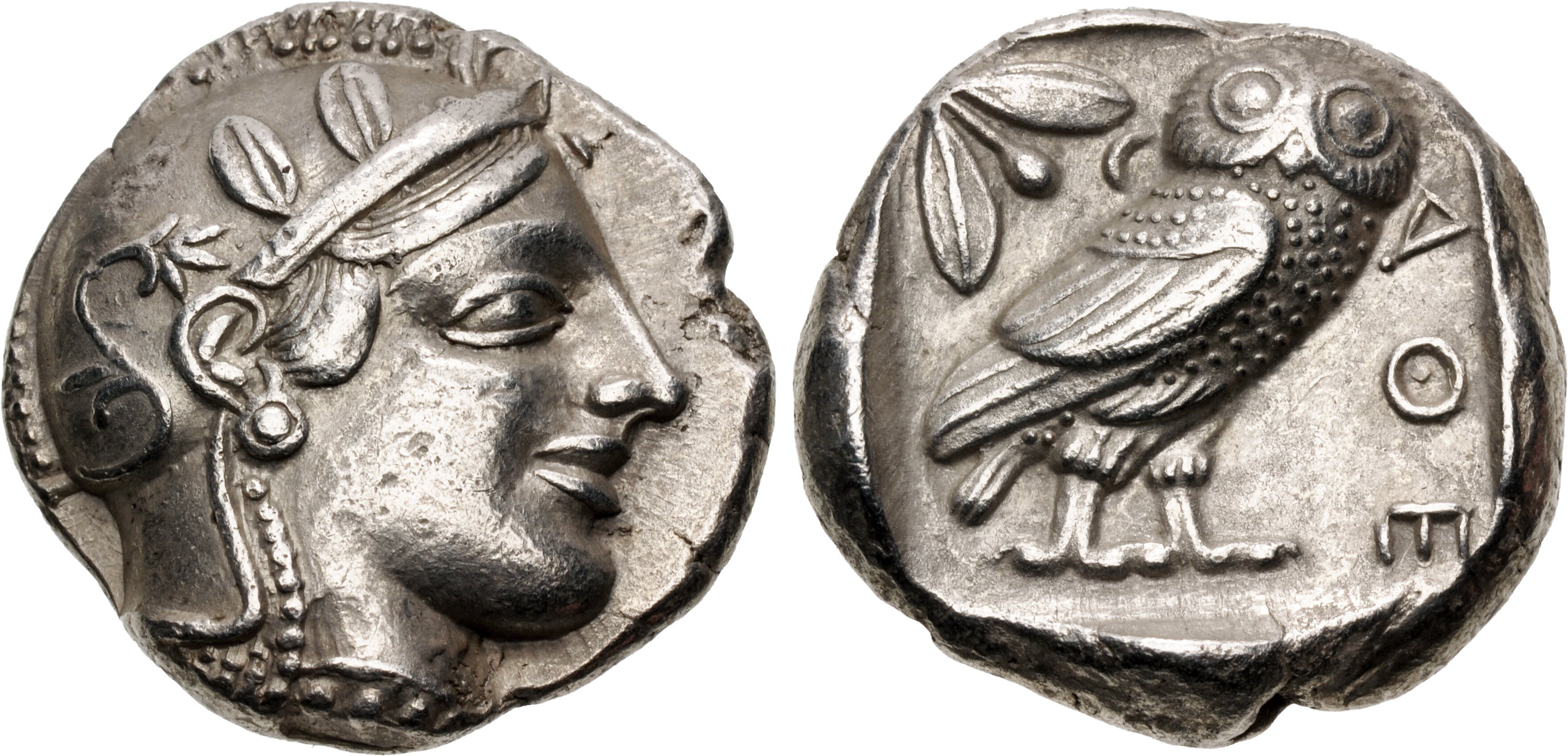 Отличная сова ! Переходный тип, от архаики к классике. Таких гораздо меньше чем обычных, классического периода.