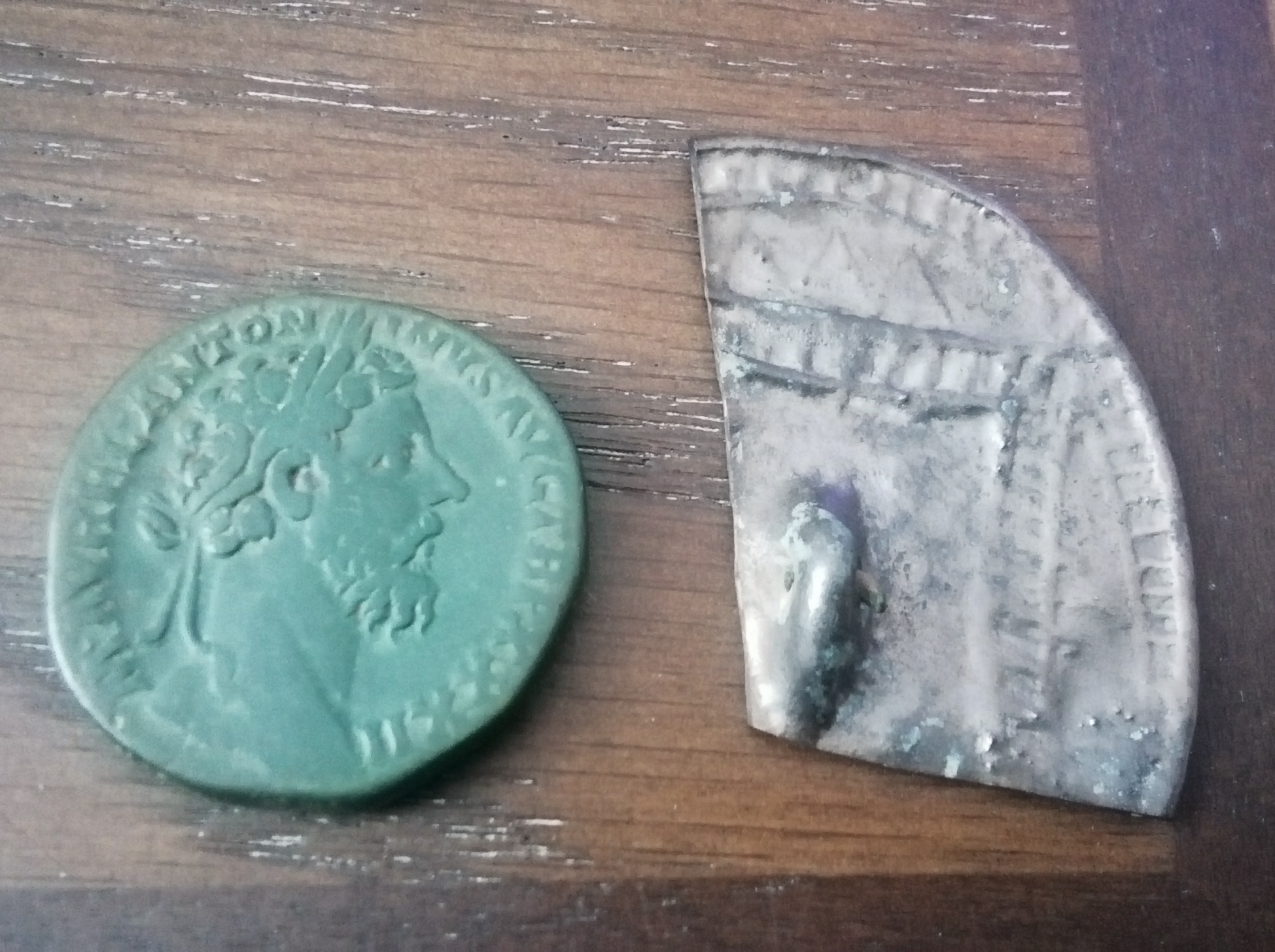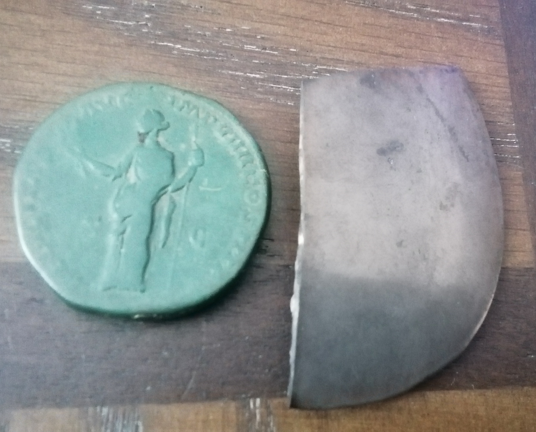 Найдена в Курской области (не мной) с четвертинкой заркала и двумя сестерциями Пия