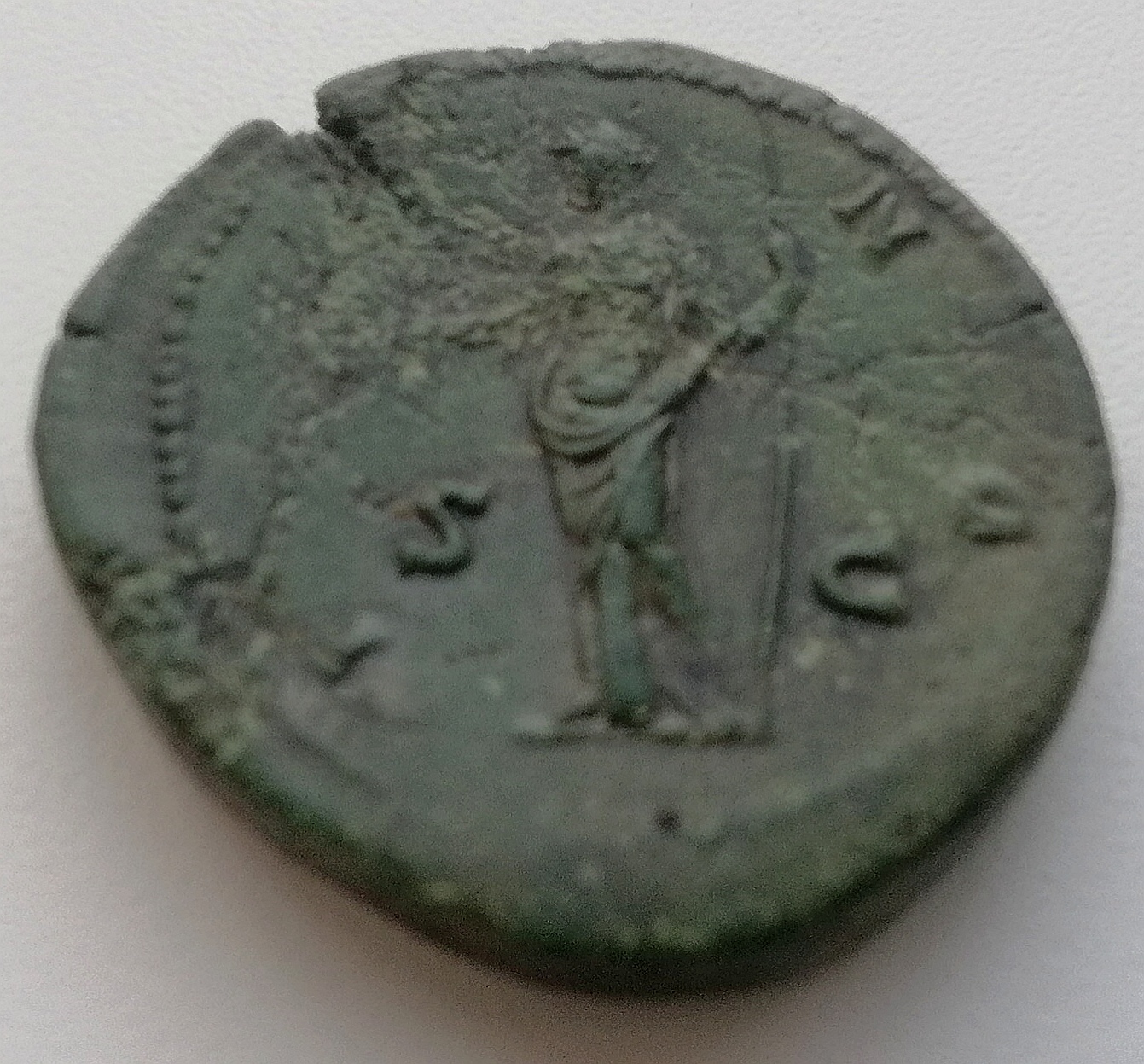 И увидел я, что под шеей Тиберия на аверсе есть хоть и небольшая, но трещина, да и от уха Тиберия через щеку до самой шеи идет какая-то полоса, похожая на царапину, которая соскоблила металл.