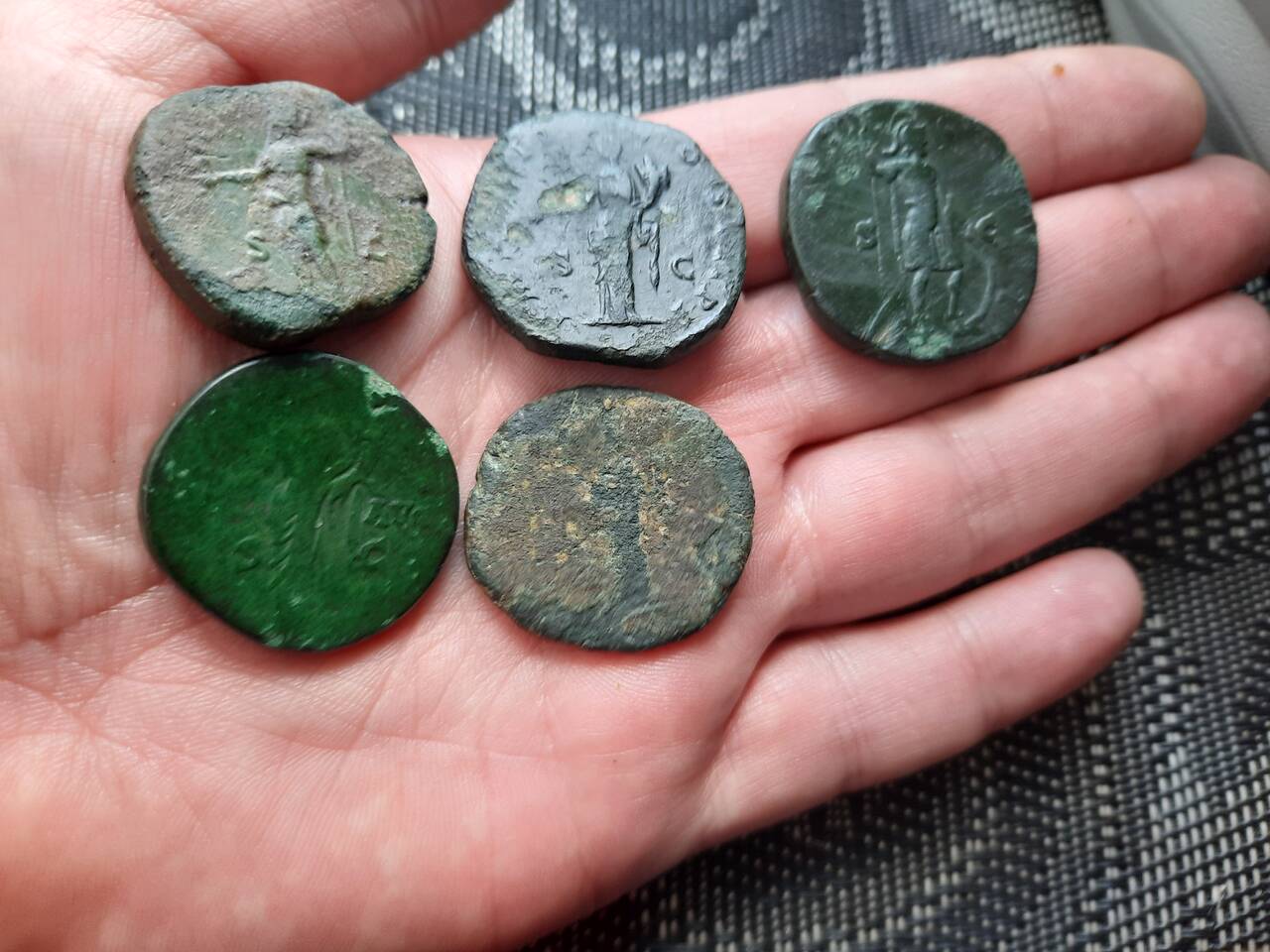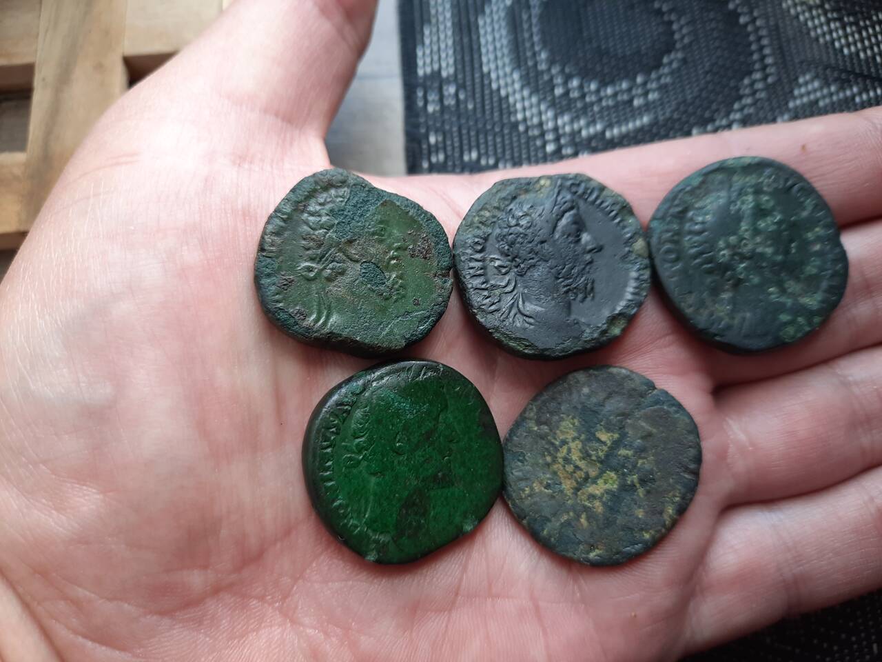 Давно не покупал монет новых.Не знаю,можно ли назвать это приобретением,взял у местного "копаря" 5 притертых сестерциев,Марк Аврелий+Коммод.Обошлось в 50 зеленых все.Хоть что-то пусть будет,🤣🤣🤣