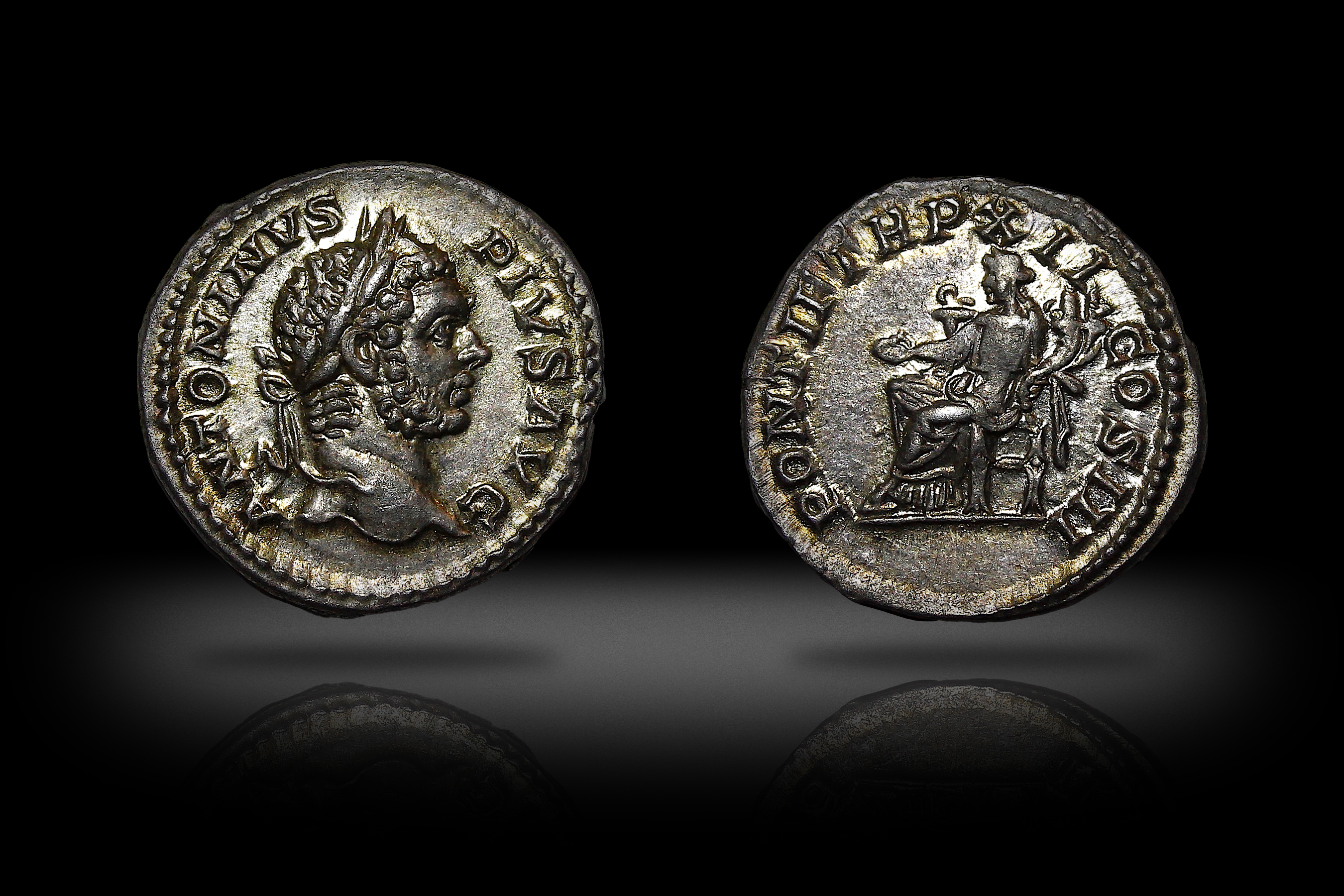2. Каракалла. Денарий. ИМХО реверс с непрочеканом, так как монета в красивом блеске.