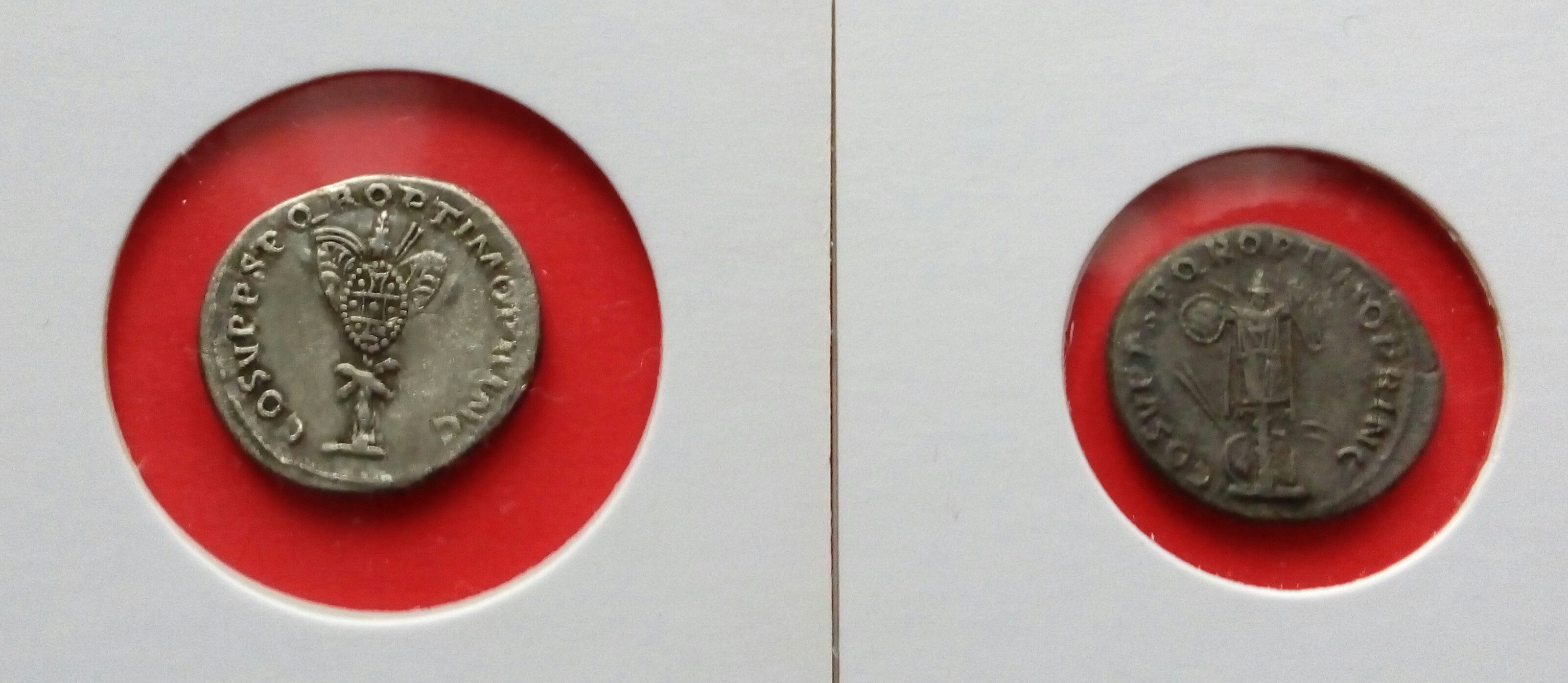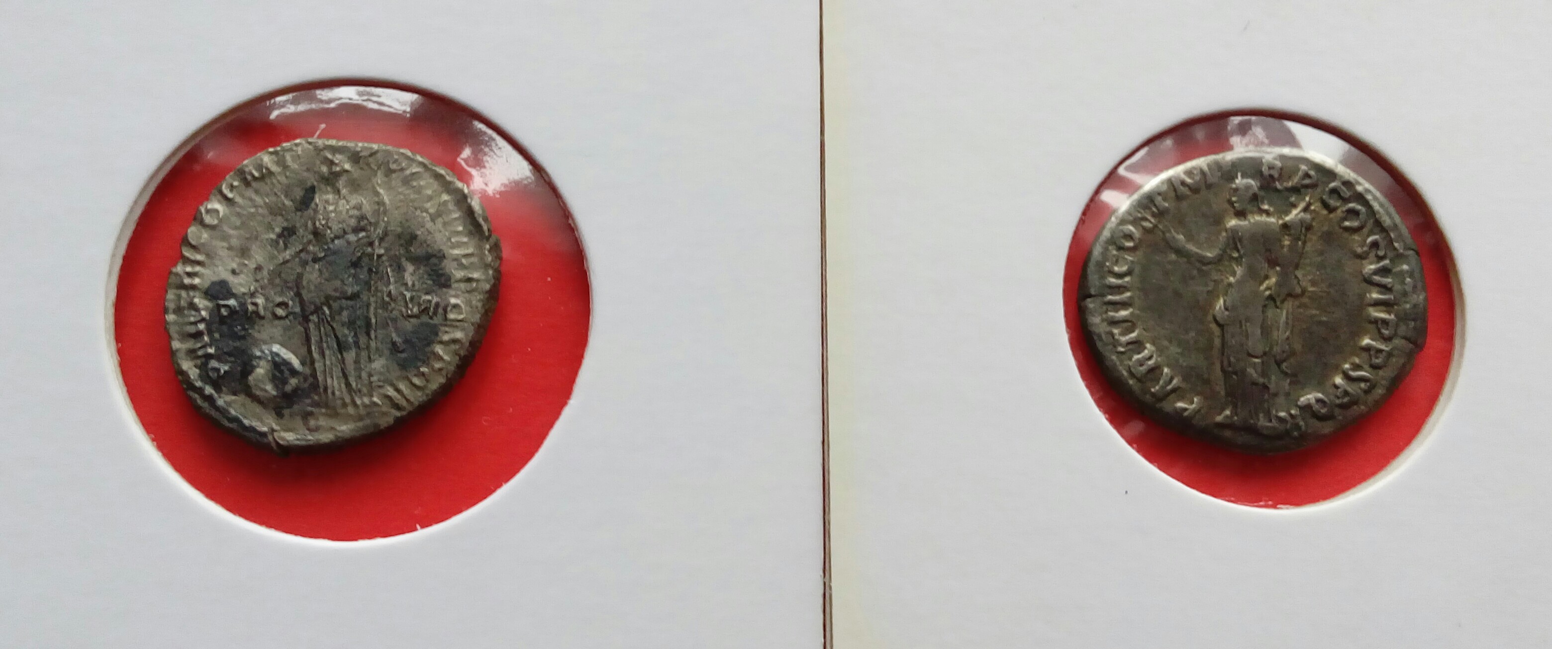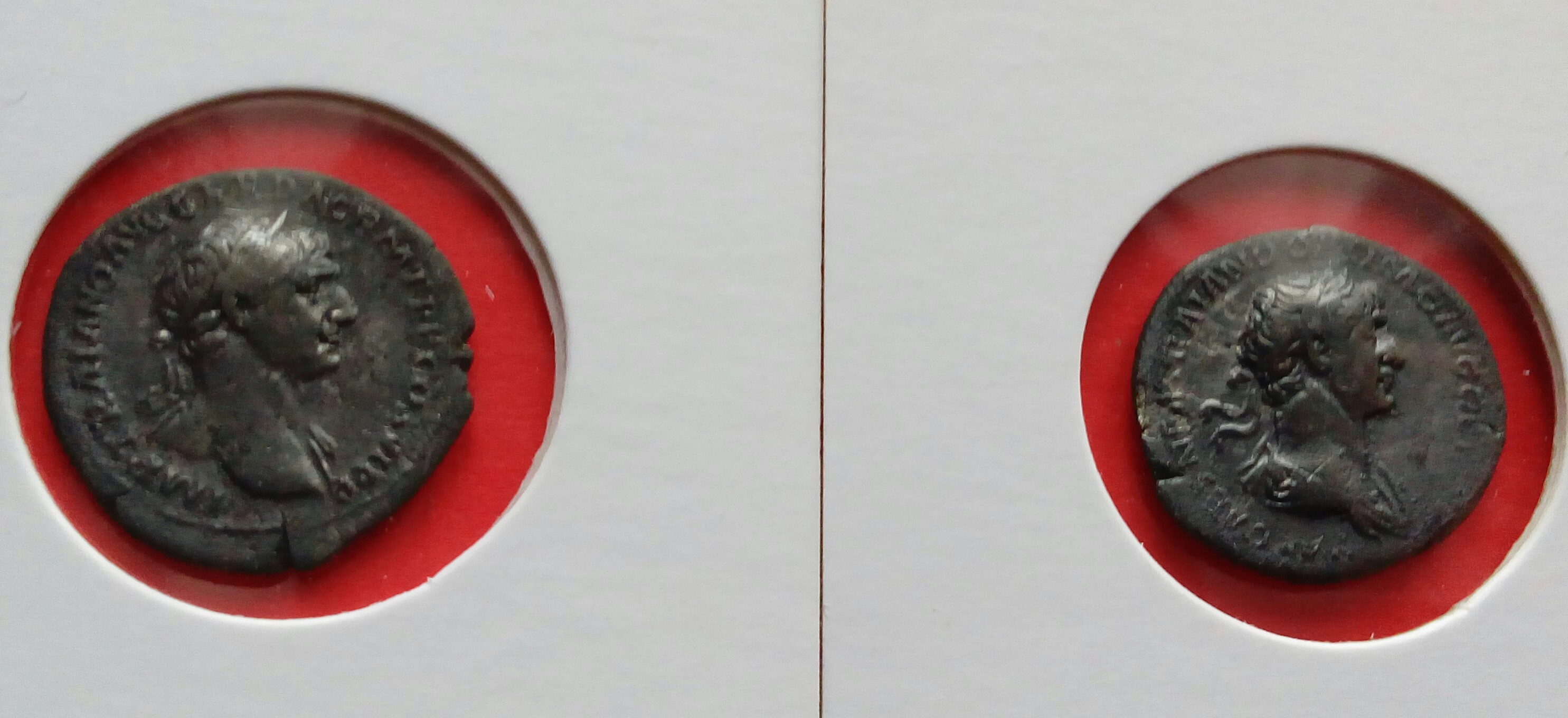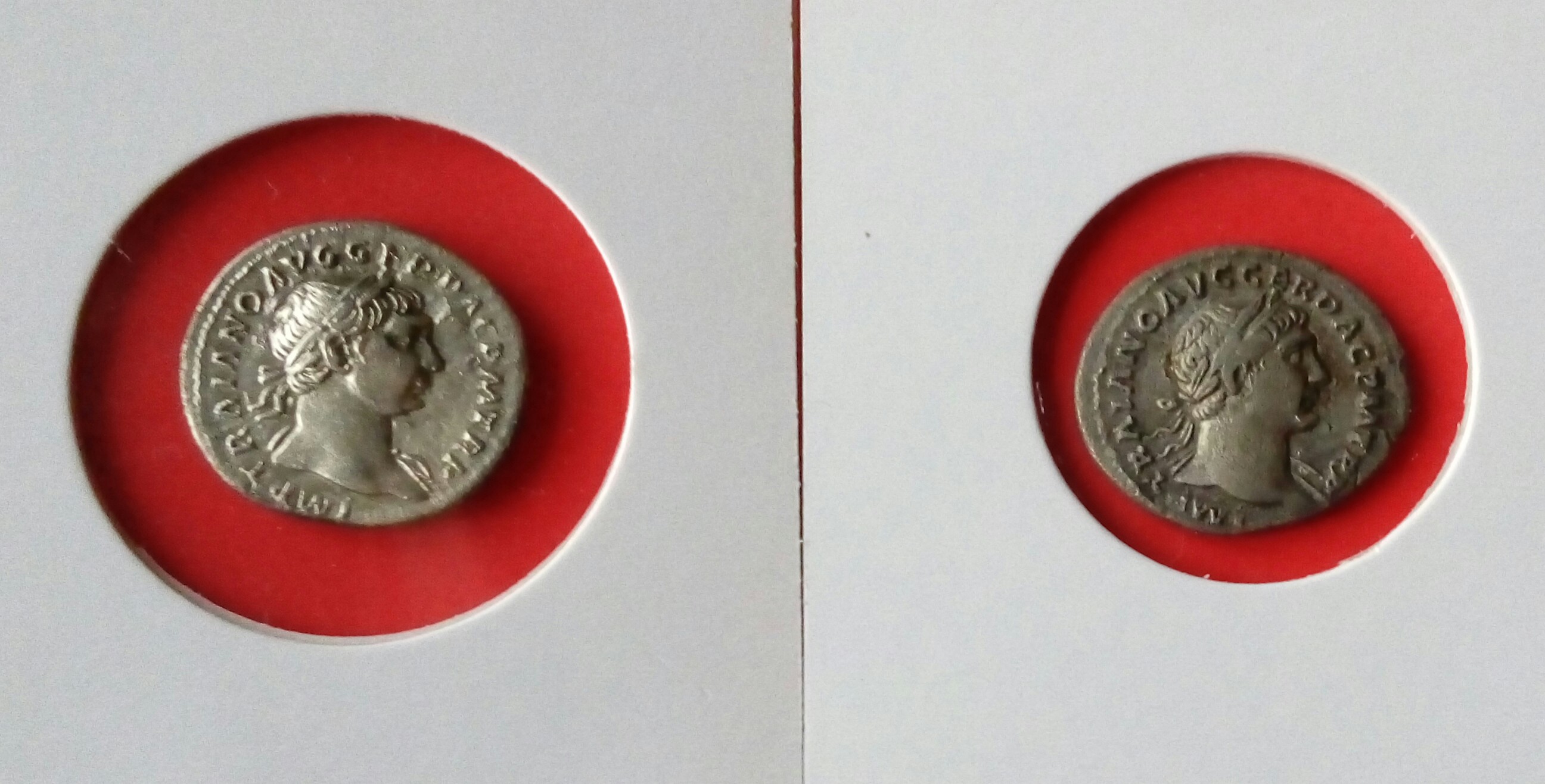 Перечитав етот раздел(многие фото не открьІваються),решьІл виставить свои ТраяньІ на обсуждение(70% поднял лично)Как я понял,ув.Bishep801 имеет специальньІе каталоги по чеканке "наилучшего принцпса" по етому очень интересно его мнение,как специалиста-есть ли редкие екземплярьІ среди моей подборки?Также вьІставлю на обсуждение денарик Августа,которьІй очень похож мордой лица на Траяна.С уважением